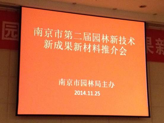 2014年11月25日,南京市園林局在南京國際會議中心大酒店組織召開了“南京市第二屆園林新技術(shù)新材料推介會”南京市園林局領(lǐng)導,江蘇省和南京市園林系統(tǒng)專家學者出席了會議,南京市園林系統(tǒng)200多家單位派代表參加了會議。會議簡短熱烈,與會代表就園林專業(yè)的新技術(shù)新材料進行了良好的溝通與交流。